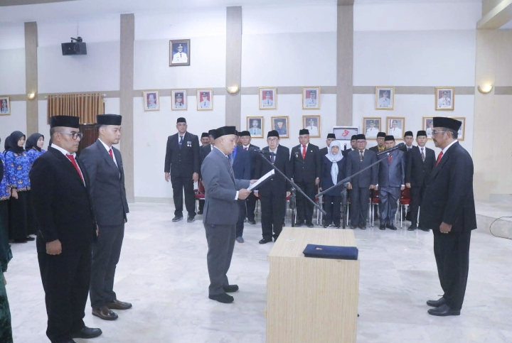 INFOPOLISI.NET | SUKABUMI –Pemerintah Kabupaten Sukabumi kembali melakukan penguatan struktur birokrasi melalui pelantikan puluhan pegawai negeri sipil (PNS). Bupati Sukabumi, H Asep Japar, memimpin langsung prosesi pelantikan dan pengambilan sumpah jabatan tersebut di Aula Sekretariat Daerah, pada Rabu (1/4/2026).
