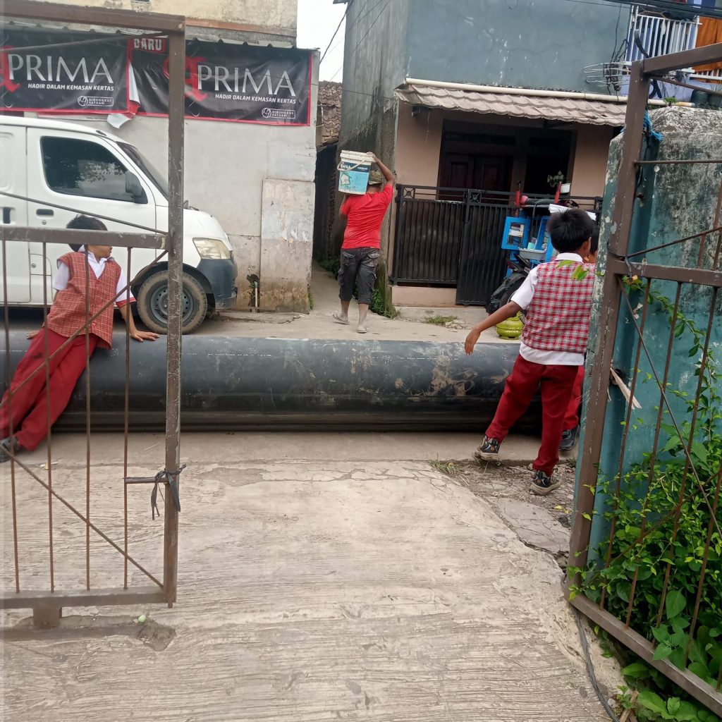 Selain itu, pipa air berukuran besar dengan panjang sekitar 30 meter yang dipasang di depan rumah warga juga menghalangi akses keluar-masuk kendaraan, memperburuk kondisi sosial dan ekonomi warga sekitar.