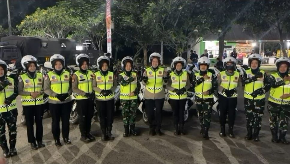 Puluhan polwan dari Polda Jabar bersama Wan TNI ini, pada senin dini hari (16/3/2026) bergerak menyisir rest area kilometer 57 tol Jakarta-Cikampek, untuk membagikan makanan sahur bagi para pemudik yang tengah beristirahat.