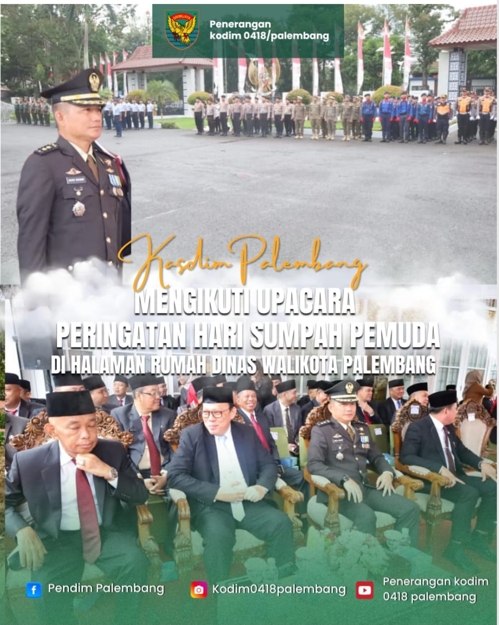 Kasdim 0418/Palembang Letkol Inf Dery menyampaikan bahwa momentum peringatan Sumpah Pemuda menjadi pengingat penting bagi seluruh elemen bangsa untuk terus menjaga semangat persatuan dan cinta tanah air.
