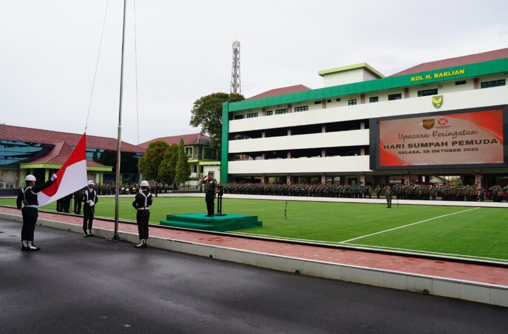 Upacara peringatan Hari Sumpah Pemuda ke-97 di Kodam II/Sriwijaya berlangsung khidmat dan penuh semangat kebangsaan.