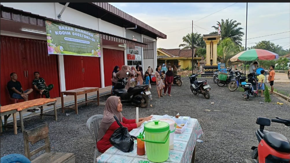 INFOPOLISI,NET | KOTA PALEMBANG – Suasana penuh kebersamaan dan semangat Ramadan mewarnai pelaksanaan Bazar Ramadan yang digelar oleh Kodim 0402/OKI-OI di halaman parkir Koperasi Merah Putih Desa Bumi Harapan, Kecamatan Teluk Gelam, Kabupaten Ogan Komering Ilir (OKI), Sabtu (28/02/2026).