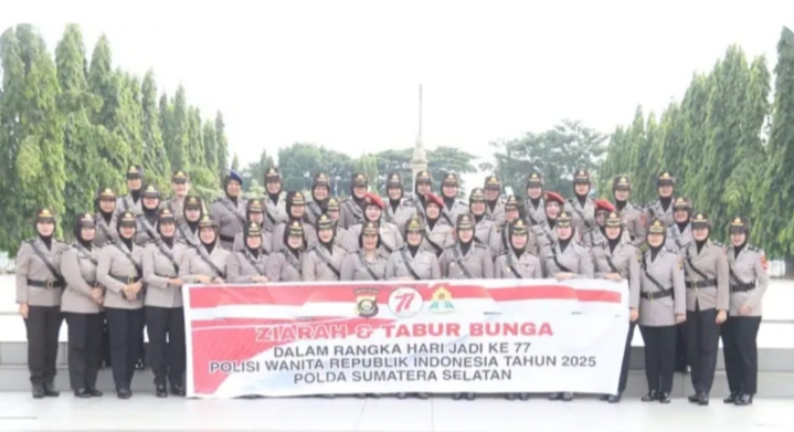 INFOPOLISI,NET | KOTA PALEMBANG – Dalam rangka memperingati Hari Ulang Tahun (HUT) Polisi Wanita (Polwan) Republik Indonesia ke-77 tahun 2025, Polwan Polda Sumsel melaksanakan kegiatan ziarah rombongan dan tabur bunga di Taman Makam Pahlawan (TMP) Ksatria Ksetra Siguntang yang Berlokasi di Kelurahan Pahlawan, Kecamatan Kemuning Kota Palembang Selasa (09/09/2025) pagi.