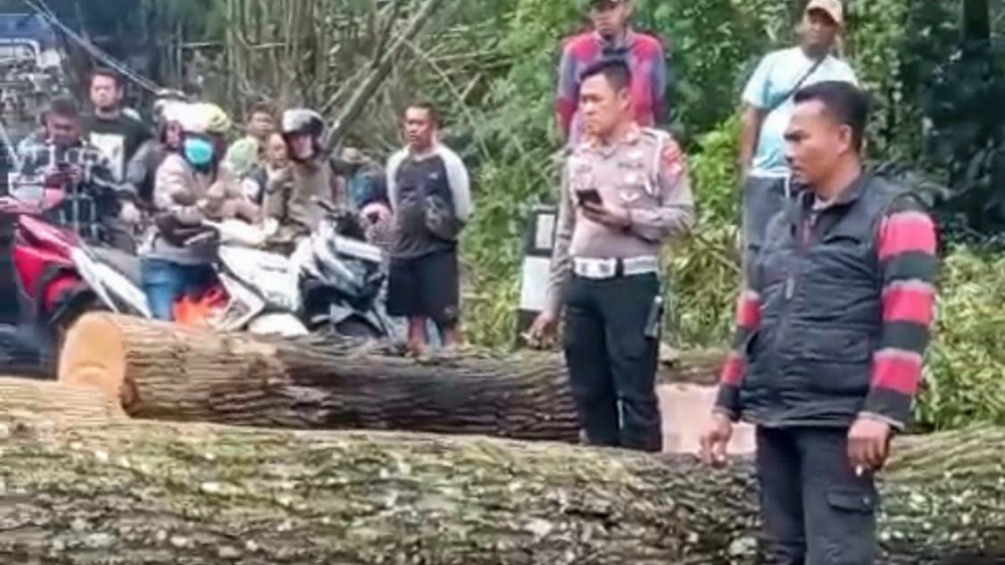 Polisi Evakuasi Pohon Tumbang di Paslon Nagreg