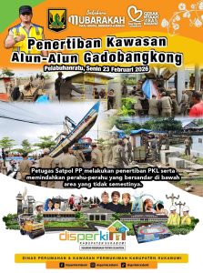 Dalam rangka menjaga ketertiban, kebersihan dan kenyamanan lingkungan. Kepala Dinas Perumahan dan Kawasan Permukiman (Disperkim) Kabupaten Sukabumi, Sendi pimpin kegiatan penertiban kawasan Alun-Alun Gadobangkong di Kecamatan Palabuanratu, pada Senin 23 Februari 2026.
