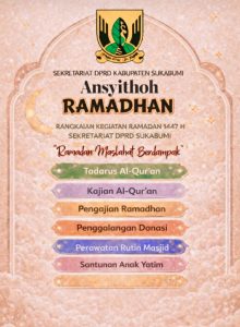 Sekretaris DPRD Kabupaten Sukabumi, H. Wawan Godawan Saputra, memimpin langsung rangkaian kegiatan keagamaan dalam program Ansyithoh Ramadhan 1447 H yang diselenggarakan oleh Sekretariat DPRD Kabupaten Sukabumi. Kegiatan ini mengusung tema “Ramadhan Maslahat Berdampak” sebagai upaya memperkuat nilai spiritual sekaligus kepedulian sosial di lingkungan kerja.